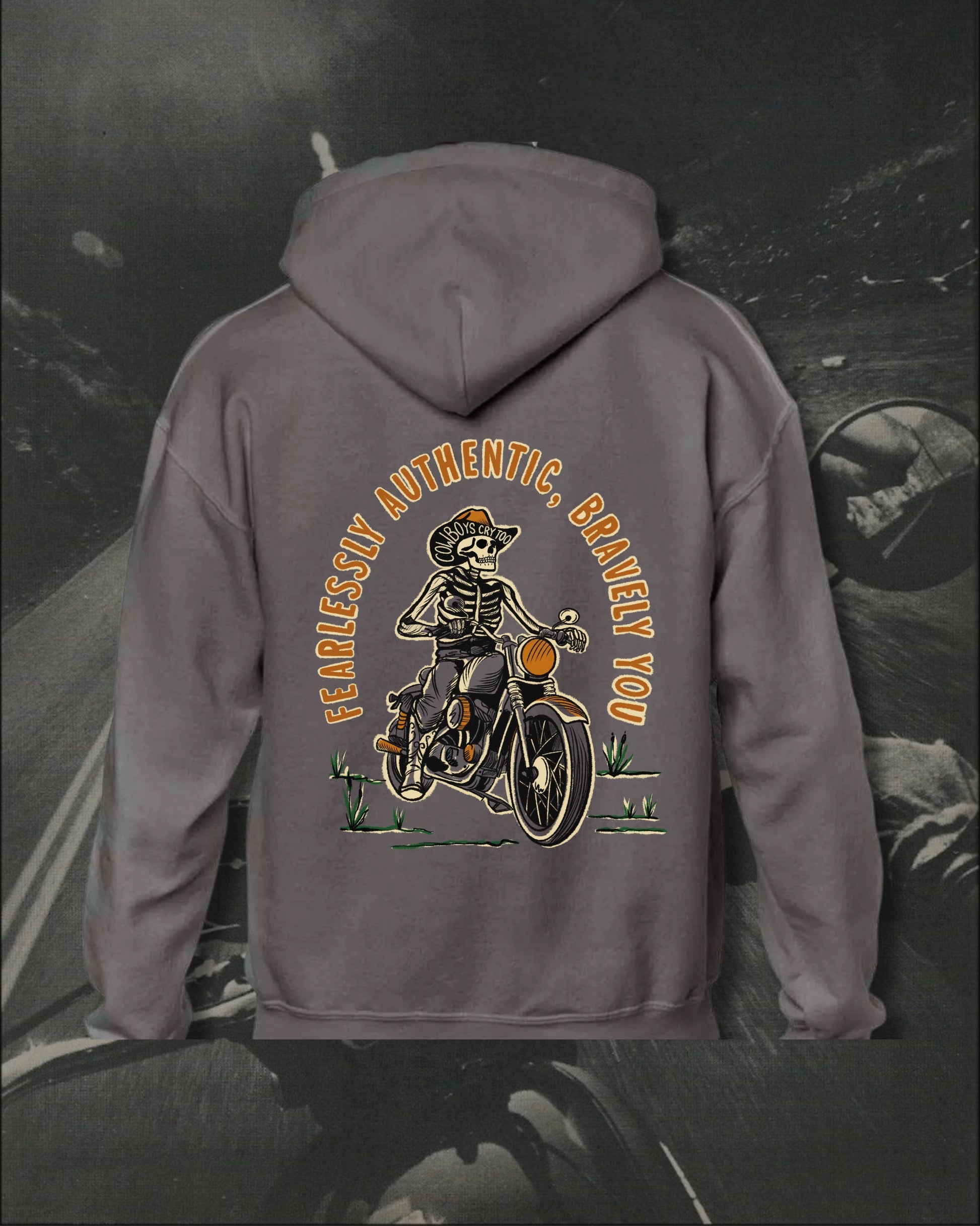 The Fearlessly Authentic Hoodie features a western design and supports mental health by donating 10% of profits to a mind charity. Stay stylish while making a positive impact.